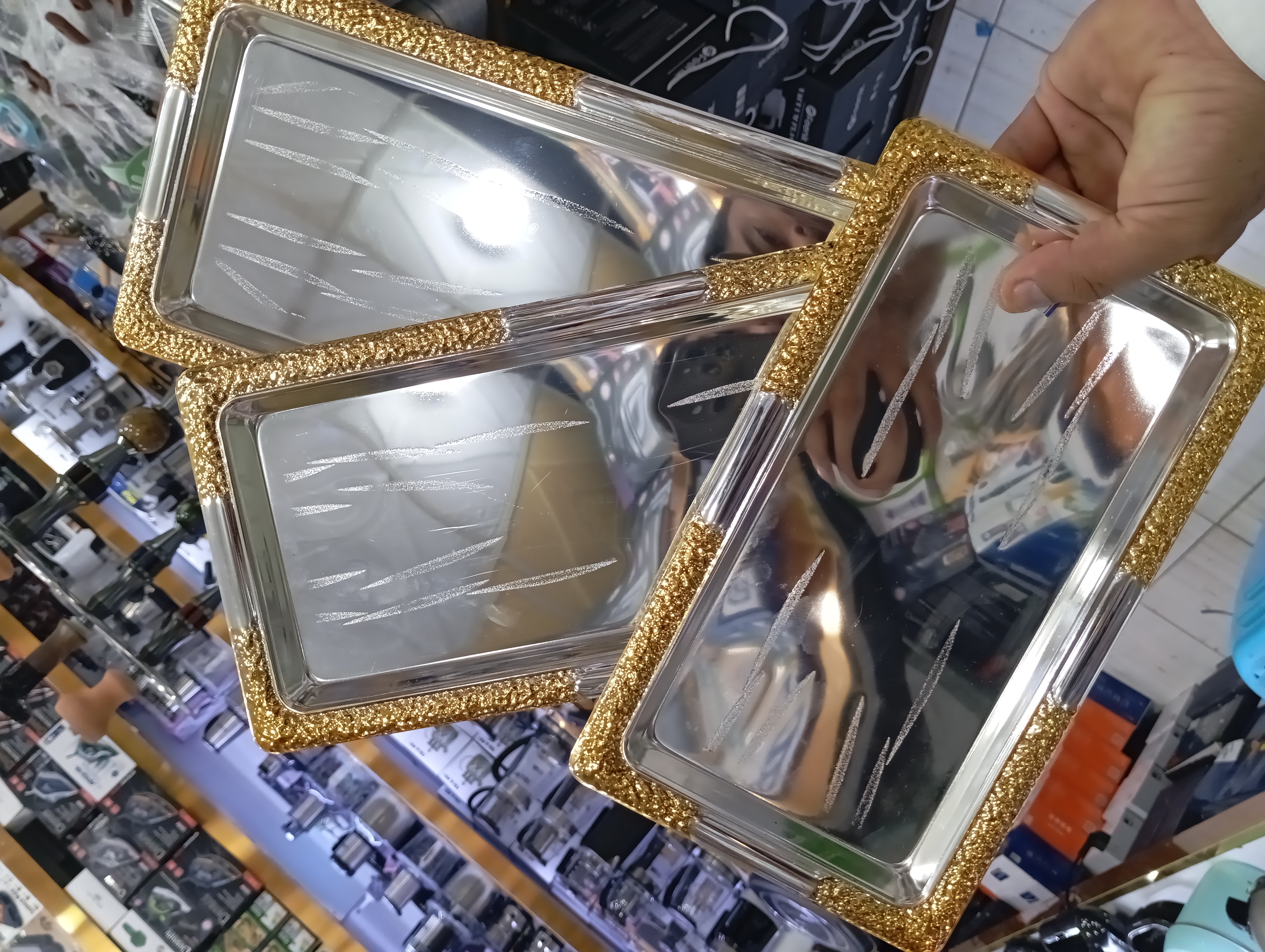 سینی پذیرایی 3تیکه سایز بزرگ رنگ ثابت لبه طلایی۱٬۷۵۰٬۰۰۰ 5%