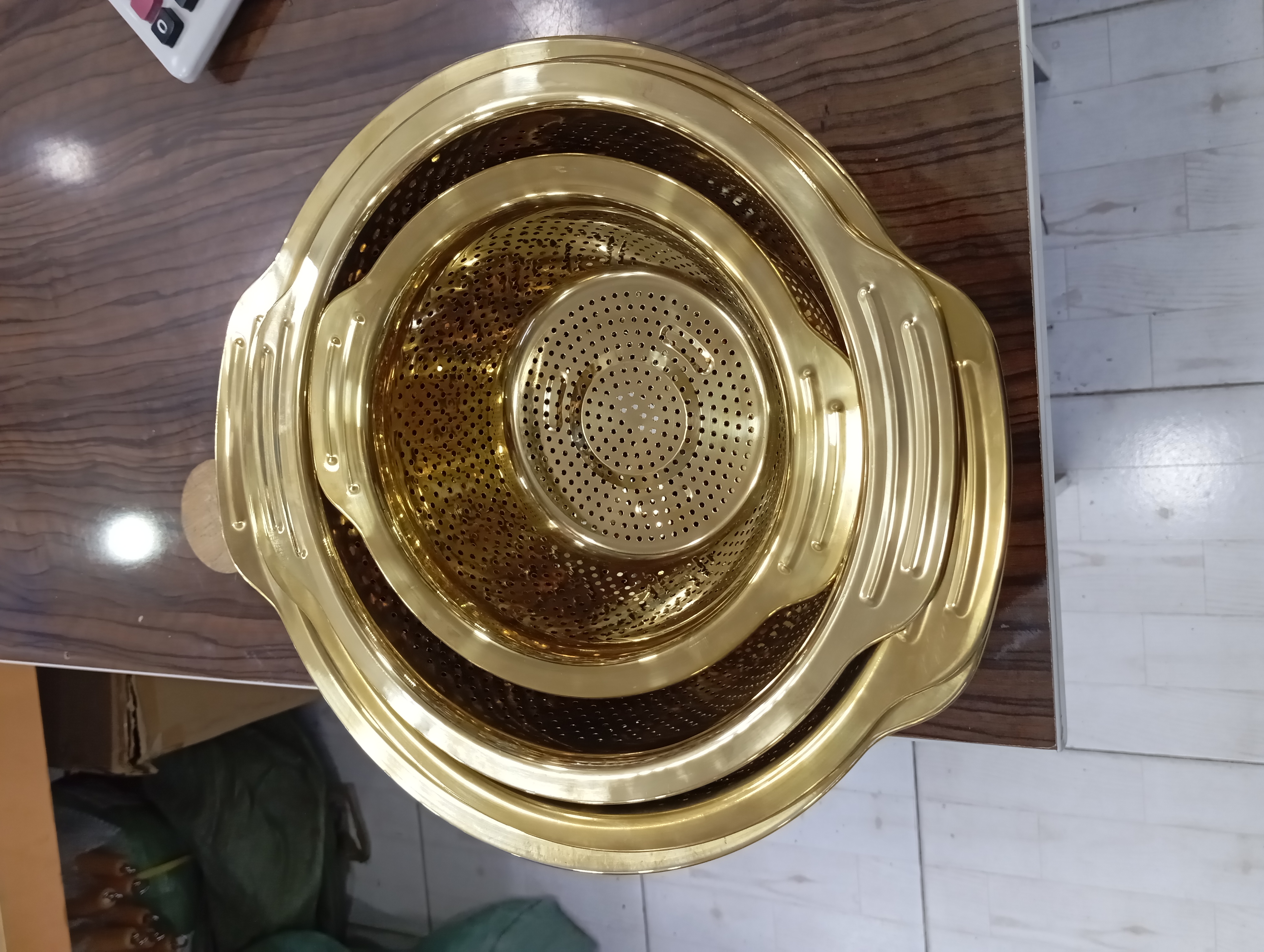 آبکش استیل رنگ طلایی ثابت 4سایز مختلف سایز 20/24/30/36
