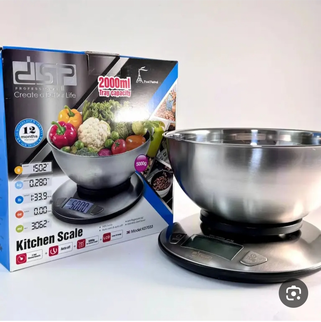 ترازو آشپزخانه برند دی اس پی کاسه استیل مدل 7033وزن 1گرام تا5کیلو